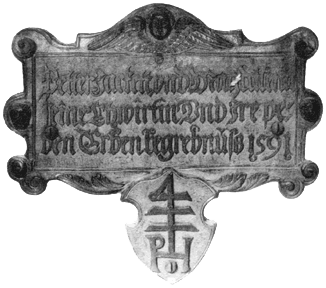 François was a member of the Small Council or Council of State as well as the Council of Two Hundred. It is from François that American Jaquets (also Jaquett and Jaquette) are descended through his son Pierre, who removed to Nurnberg at an early age when his father, François, died. Pierre was then raised by François' first cousin, then living in Nüremberg, and Pierre made his home there. Pierre Jaquet preferred to place his free mark (shown to the right) upon his tomb rather than his paternal arms of the Jaquets of Geneva (shown to the left and at the top of the page). A free mark gave a merchant many privileges, and many of the graves of merchants in the various cemeteries of Nüremburg have these symbols appearing in the epitaph on the gravestone rather than on the original family arms. In some instances these free marks were used by succeeding generations as a family escutcheon. (These free marks exempted goods from certain duties.)